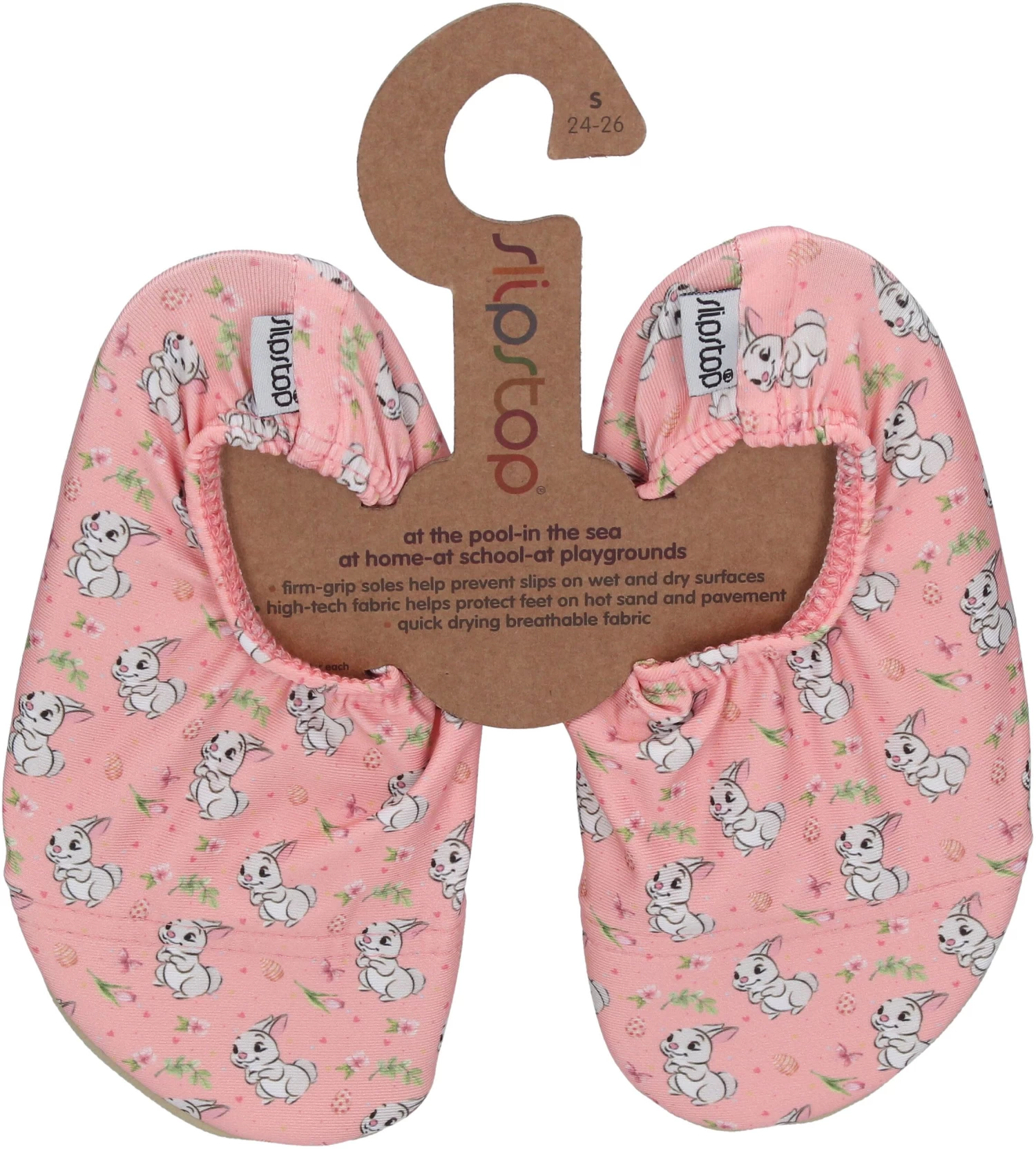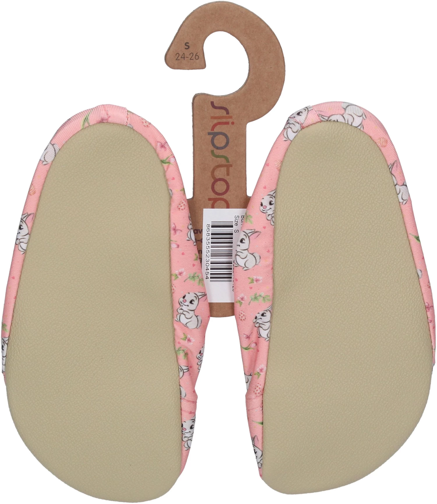 Die lustig bunten Kinderschuhe mit niedlichem Hasen-Motiv von Slipstop sind für viele Unternehmungen geeignet. Die Slipper können als Badeschuhe, Hausschuhe oder auch als Schuhe für den Kindergarten, Hort und vieles mehr verwendet werden. Die Anti-Rutsch-Sohlen sorgen für gute Haltbarkeit auf vielen Untergründen. Durch den Gummizug kann Ihr Kind die Schuhe ganz leicht selbst an-und ausziehen. Überdies haben die Schuhe einen Lichtschutzfaktor 50 – so ist die Haut Ihres Kindes auch an den Füßen geschützt.