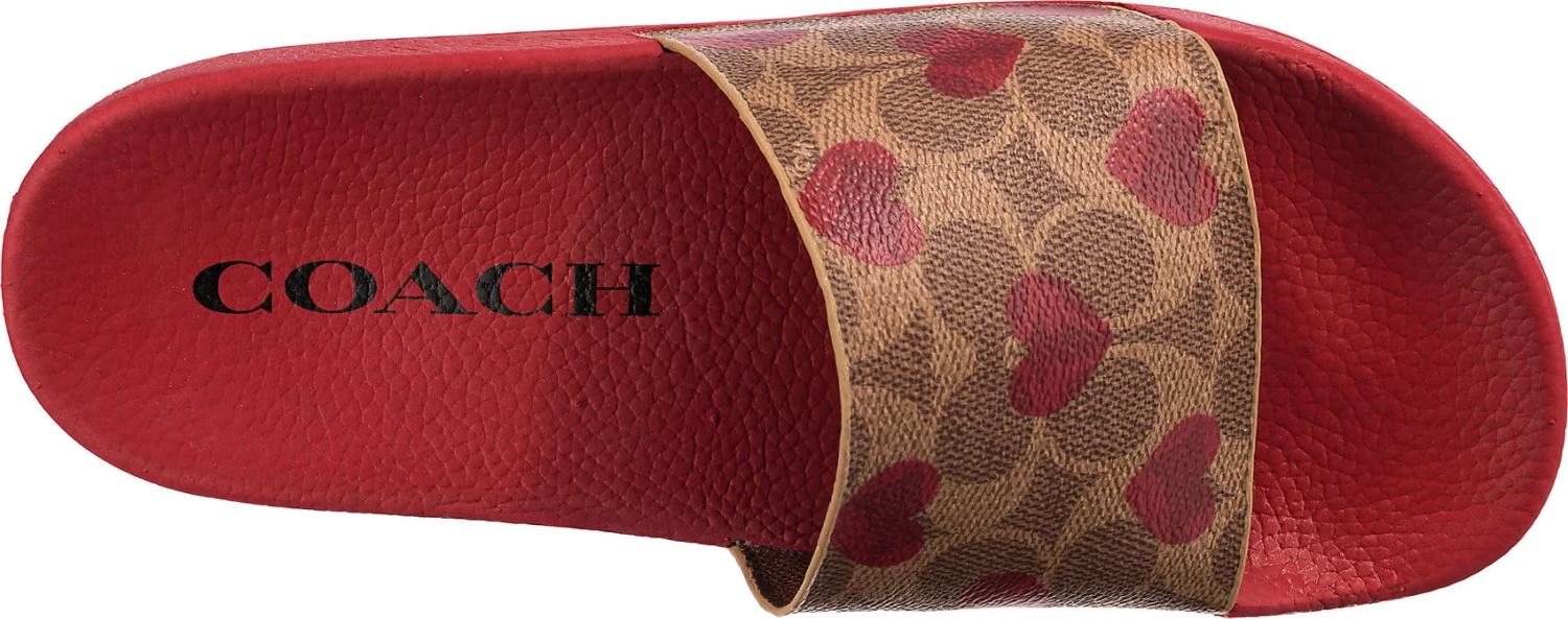 Praktisch und alltagstauglich: Die Pantoletten der Marke COACH dürfen zu keiner Gelegenheit fehlen. Das Obermaterial aus einem Materialmix aus Synthetik zeigt sich praktisch und ebenso ansprechend gestaltet.
