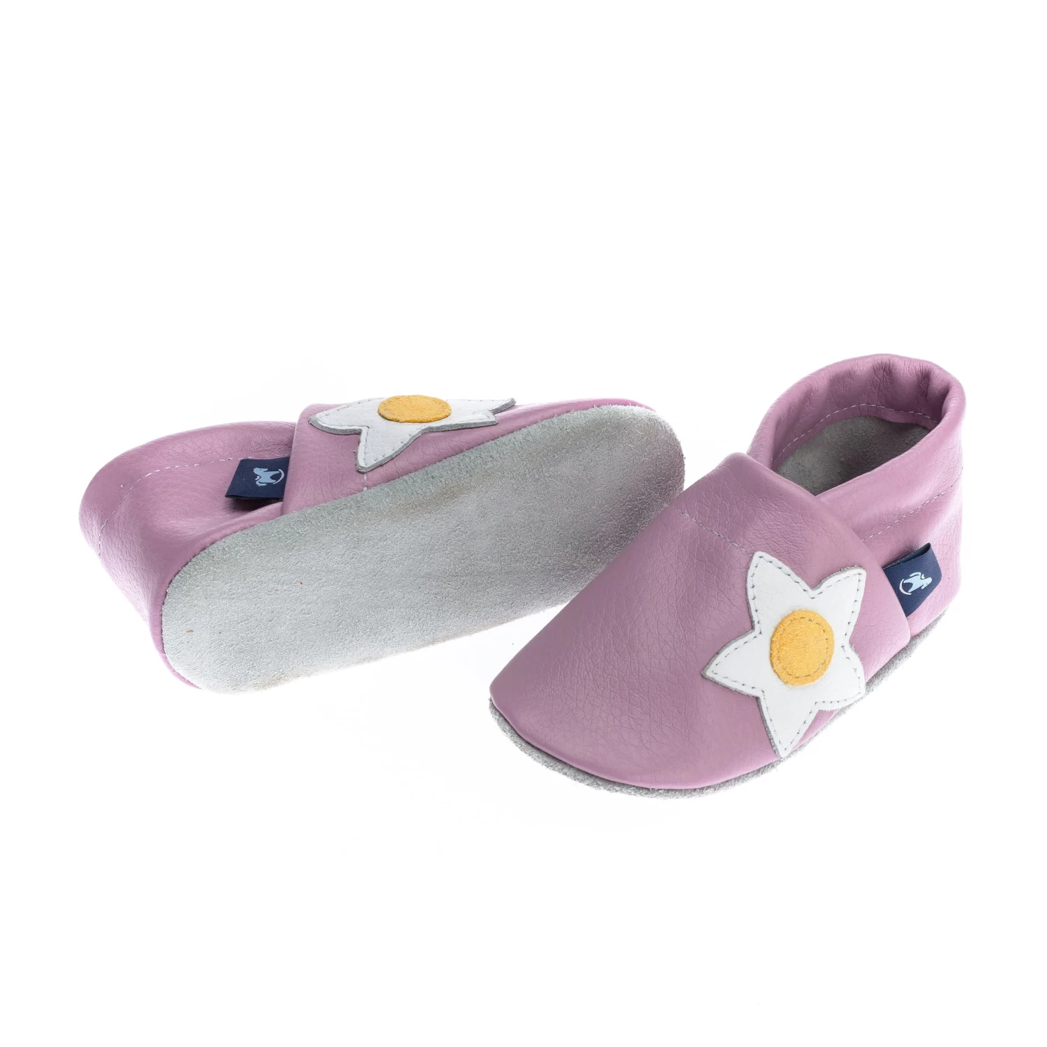 Hausschuhe / Lederpuschen Mit Blume In Lila / Weiß