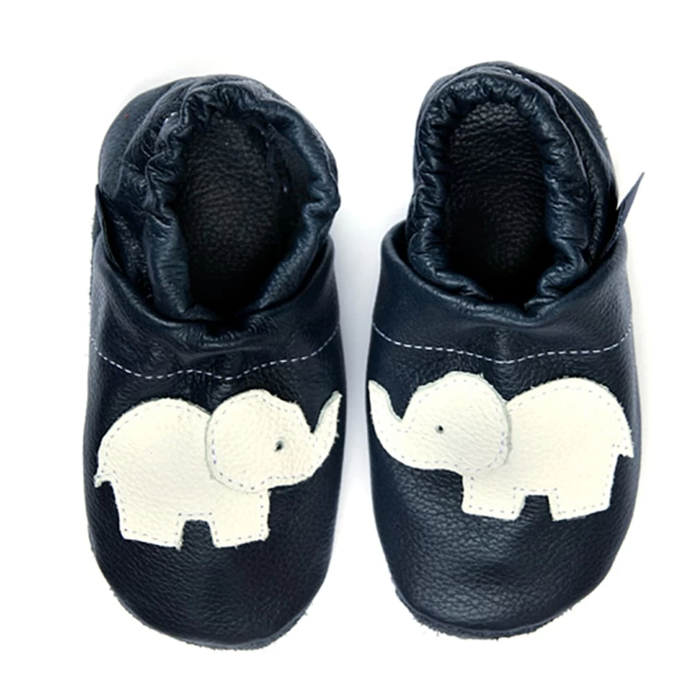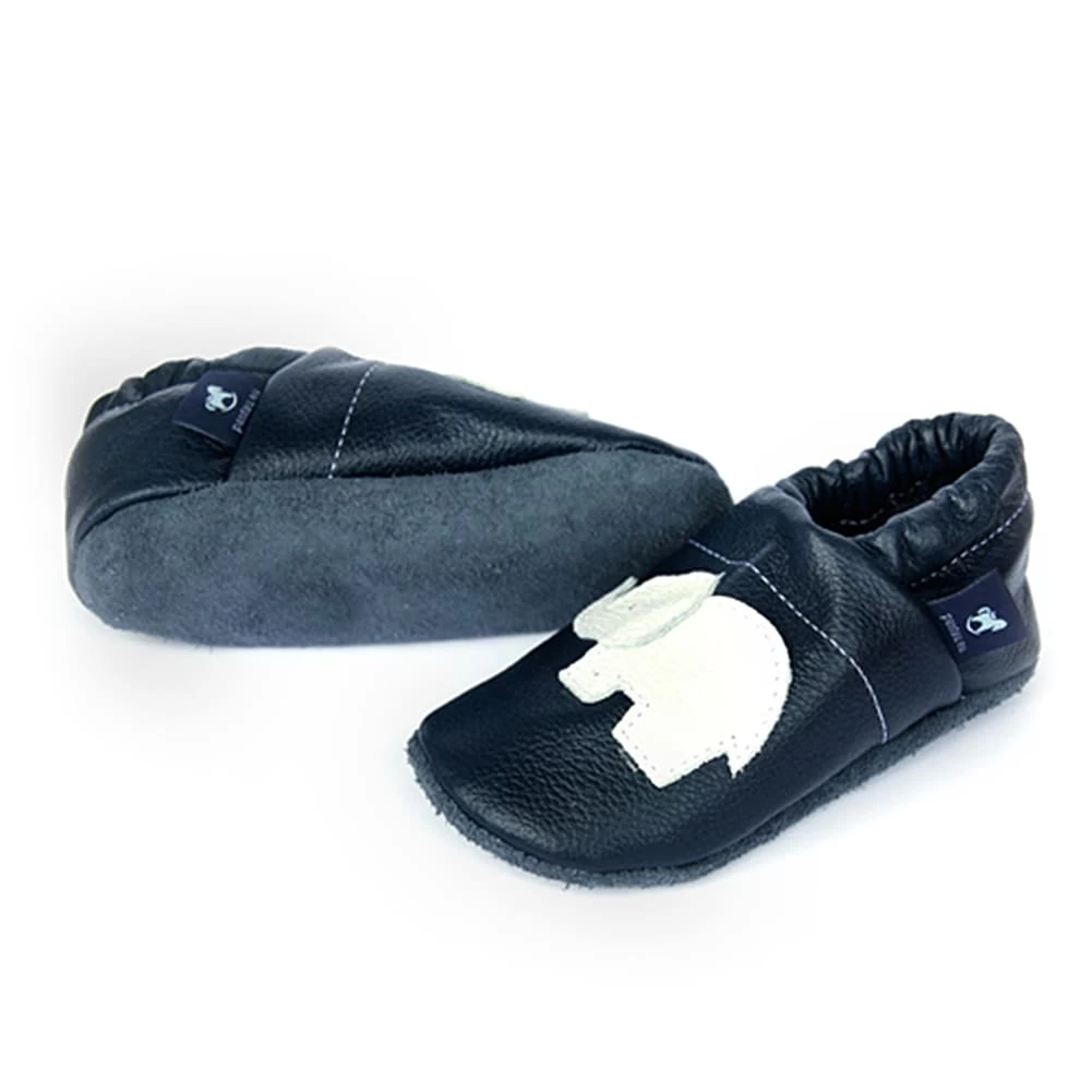 Lauflernschuhe / Lederpuschen Mit Elefant In Blau / Weiß
