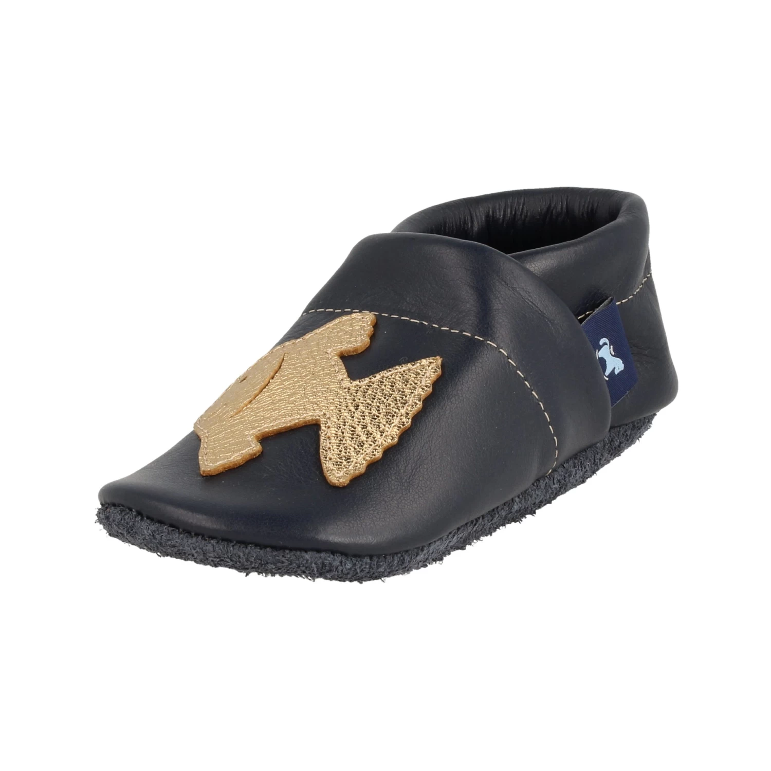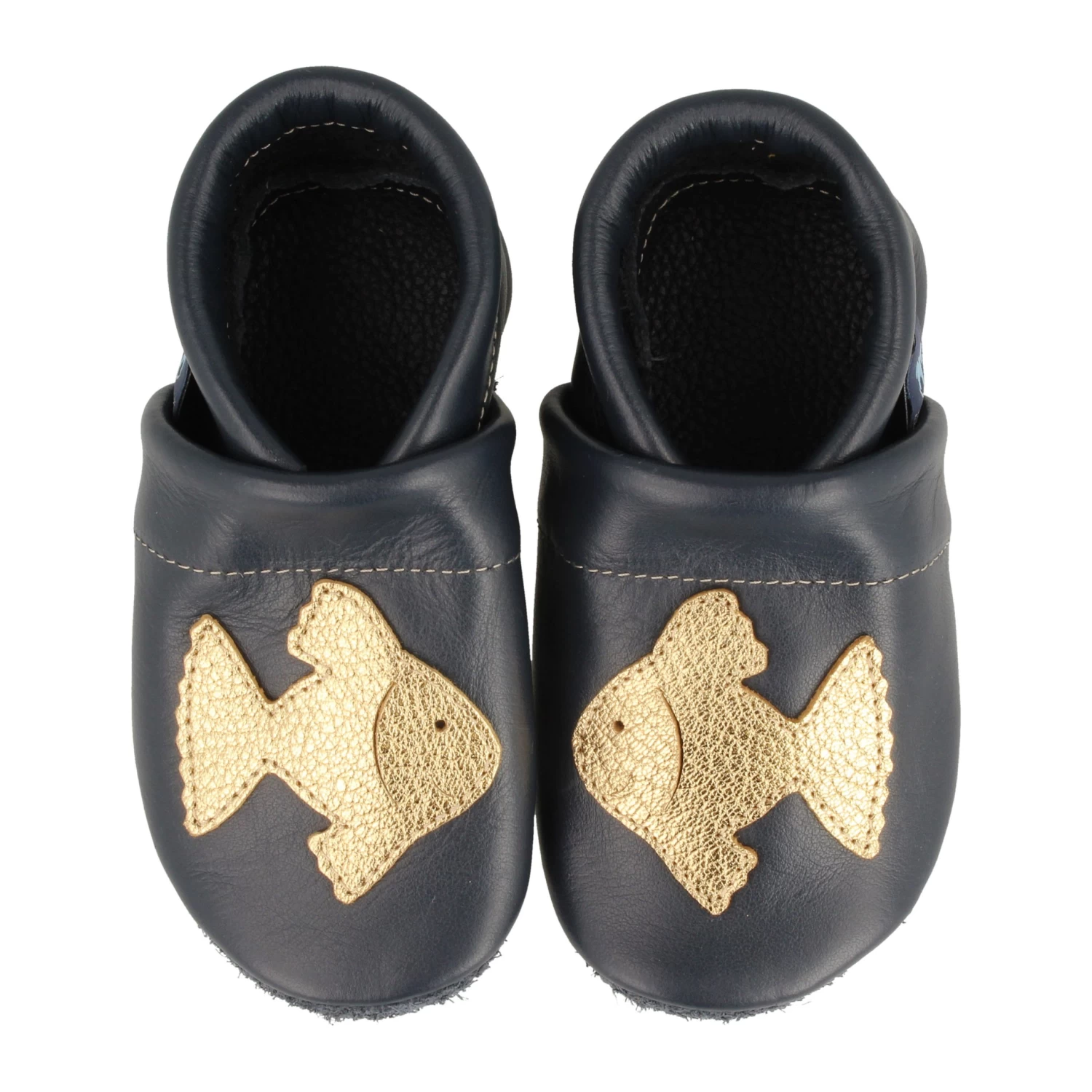 Lauflernschuhe / Lederpuschen Mit Fisch In Blau / Gold