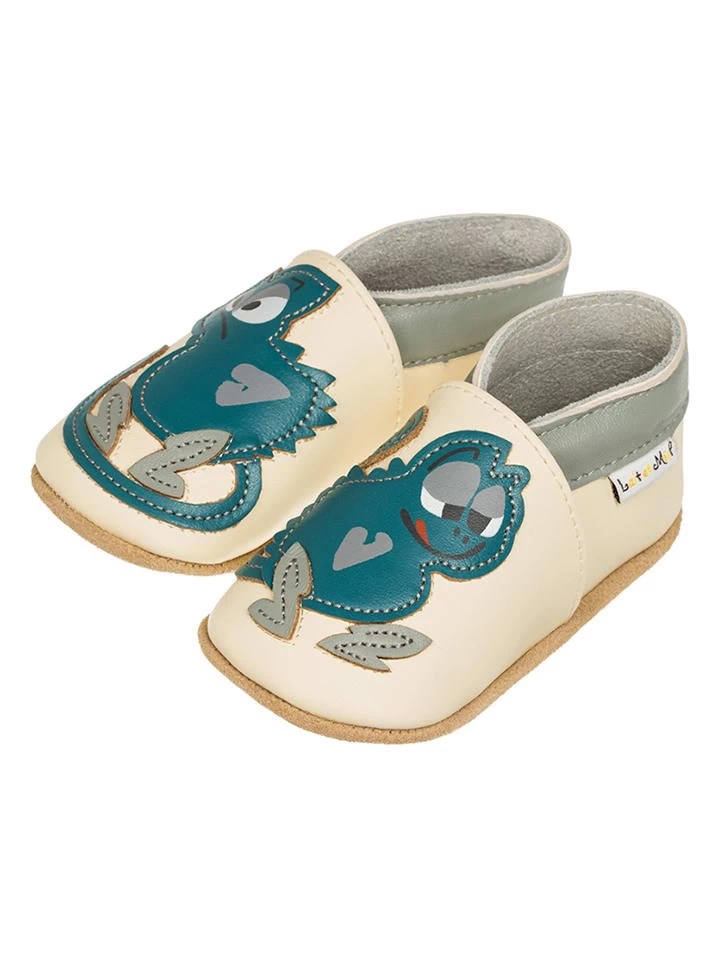 Leder-Krabbelschuhe „Chamäleon“ In Weiß/ Blau