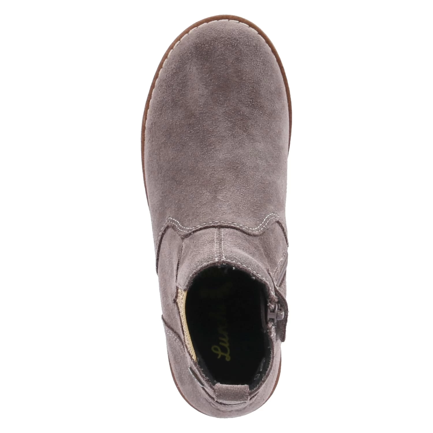 Lurchi Mädchen Chelsea Boots/ Stiefeletten FENJA-TEX Taupe Rauleder – wasserdicht, atmungsaktiv – Reißverschluss und Elastikeinsatz – gepolsterter Einstieg – Ziernähte – verstärkter Fersenbereich – flexible, rutschhemmende Laufsohle – Wechselfußbett – leichtes, warmes Fleecefutter