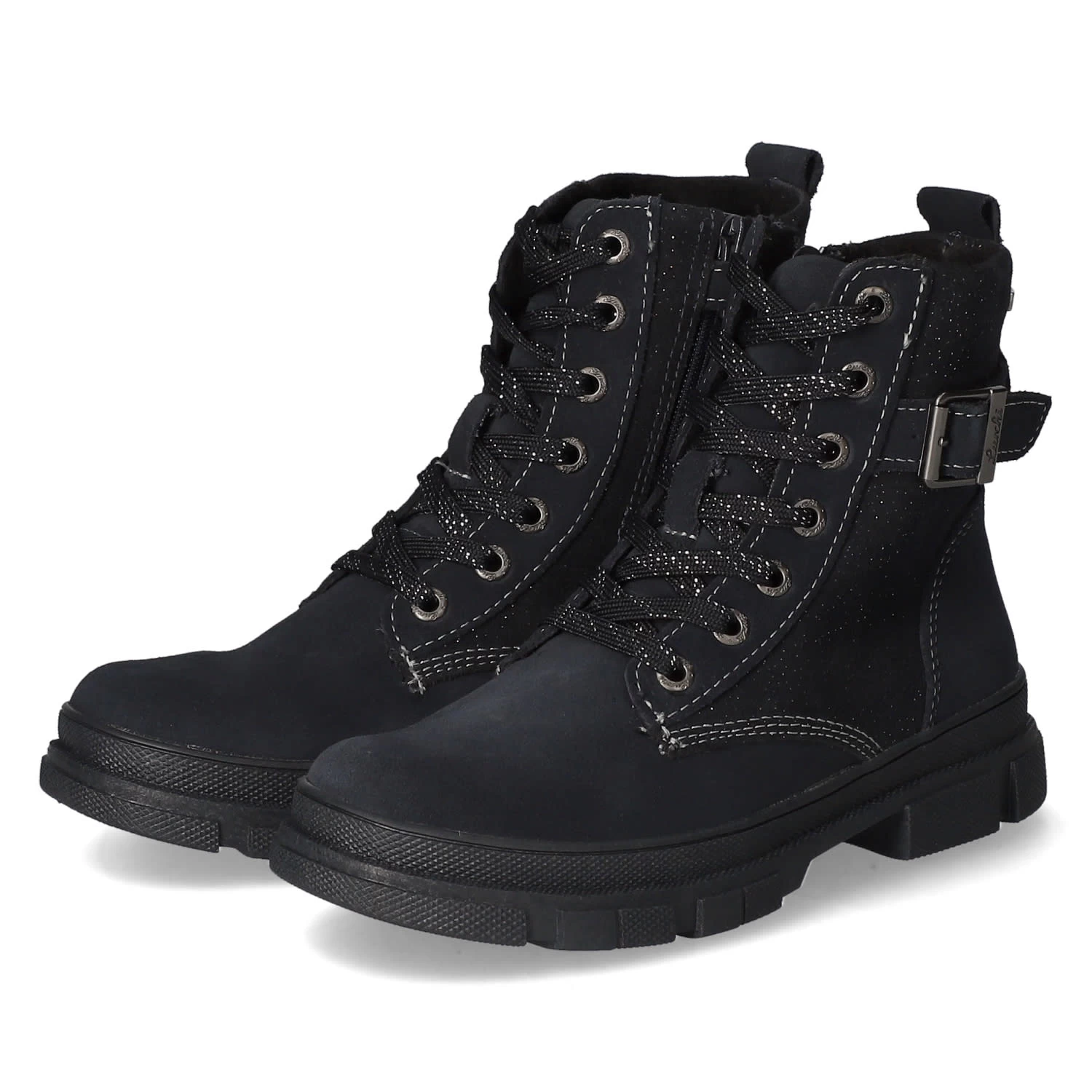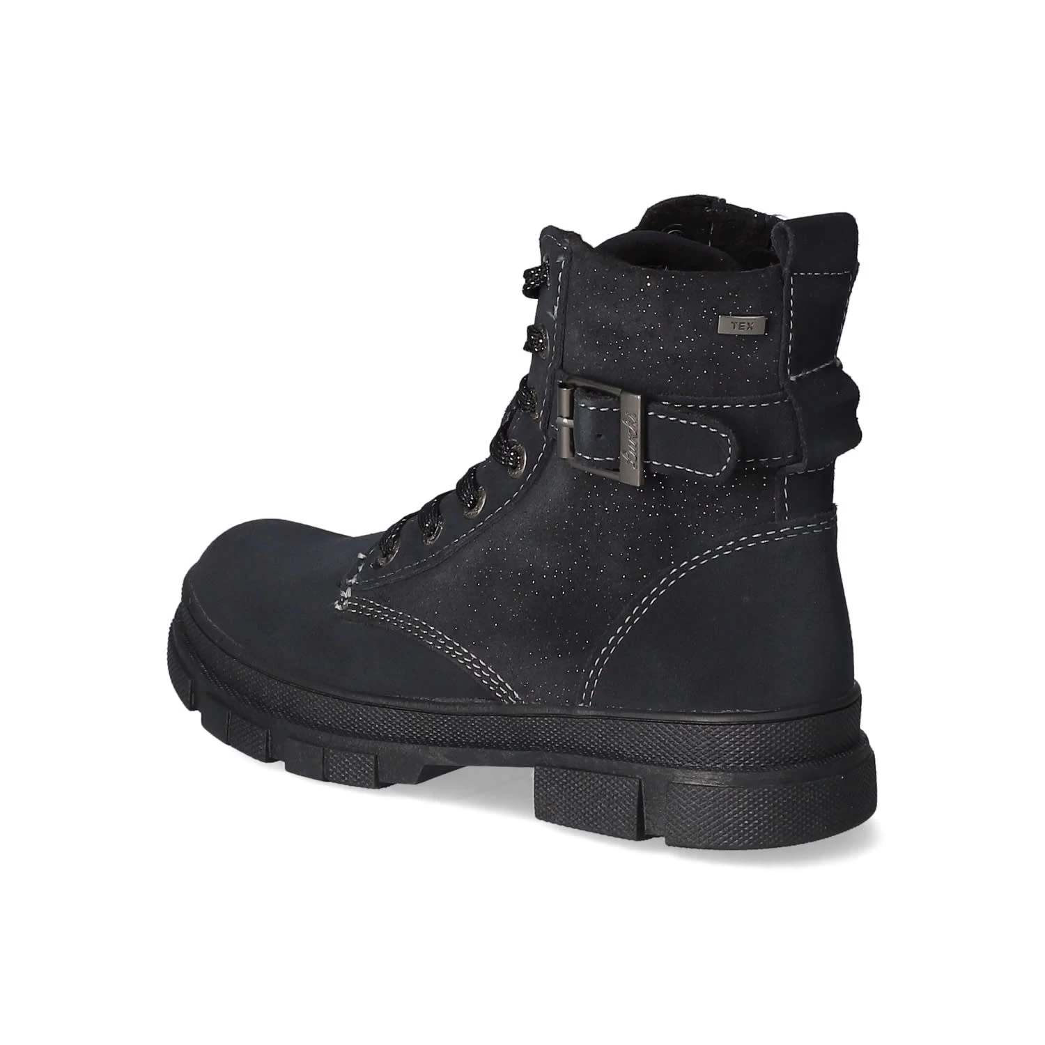 Lurchi Mädchen Stiefeletten/ Schnürstiefeletten PINA Blau Rauleder -wasserdicht, winddicht und atmungsaktiv (TEX) – Schnürung und Reißverschluss – dezenter Klettriemen – glitzernde Highlights – modische Ziernähte – Zierriemenmit Schnalle – Anziehlasche – leicht gepolsterter Einstieg – weiches Textilfutter – verstärkter Fersenbereich – flexible, rutschhemmende Profilsohle