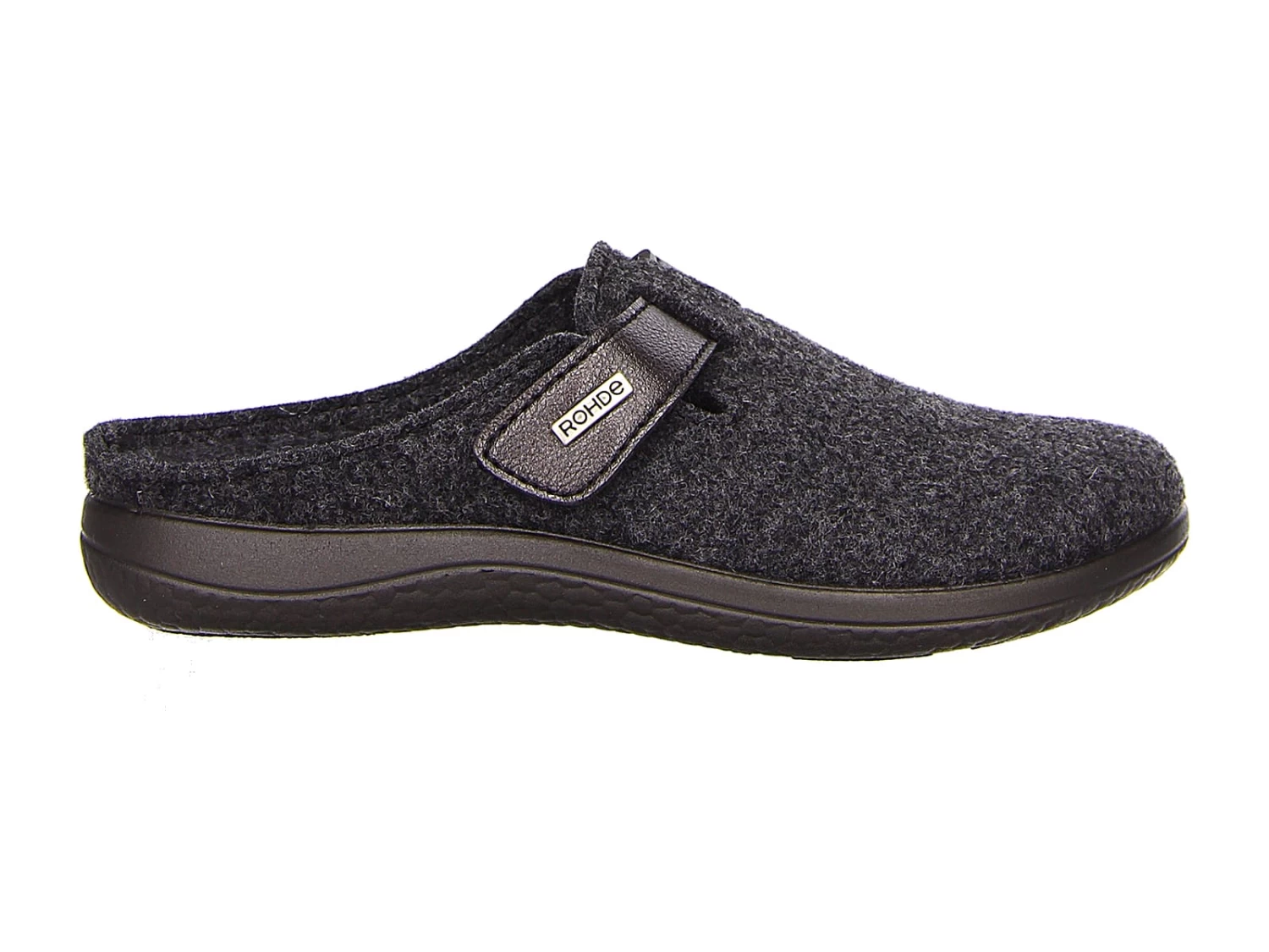 Diese grauen Filz-Pantoffeln von Rohde bringen Gemütlichkeit in kühle Wintertage. Das Wechselfußbett bietet Ihnen die Möglichkeit individuelle Einlagen einzulegen. Die flache und rutschhemmende Laufsohle garantiert ein sicheres, problemloses Gehen.
