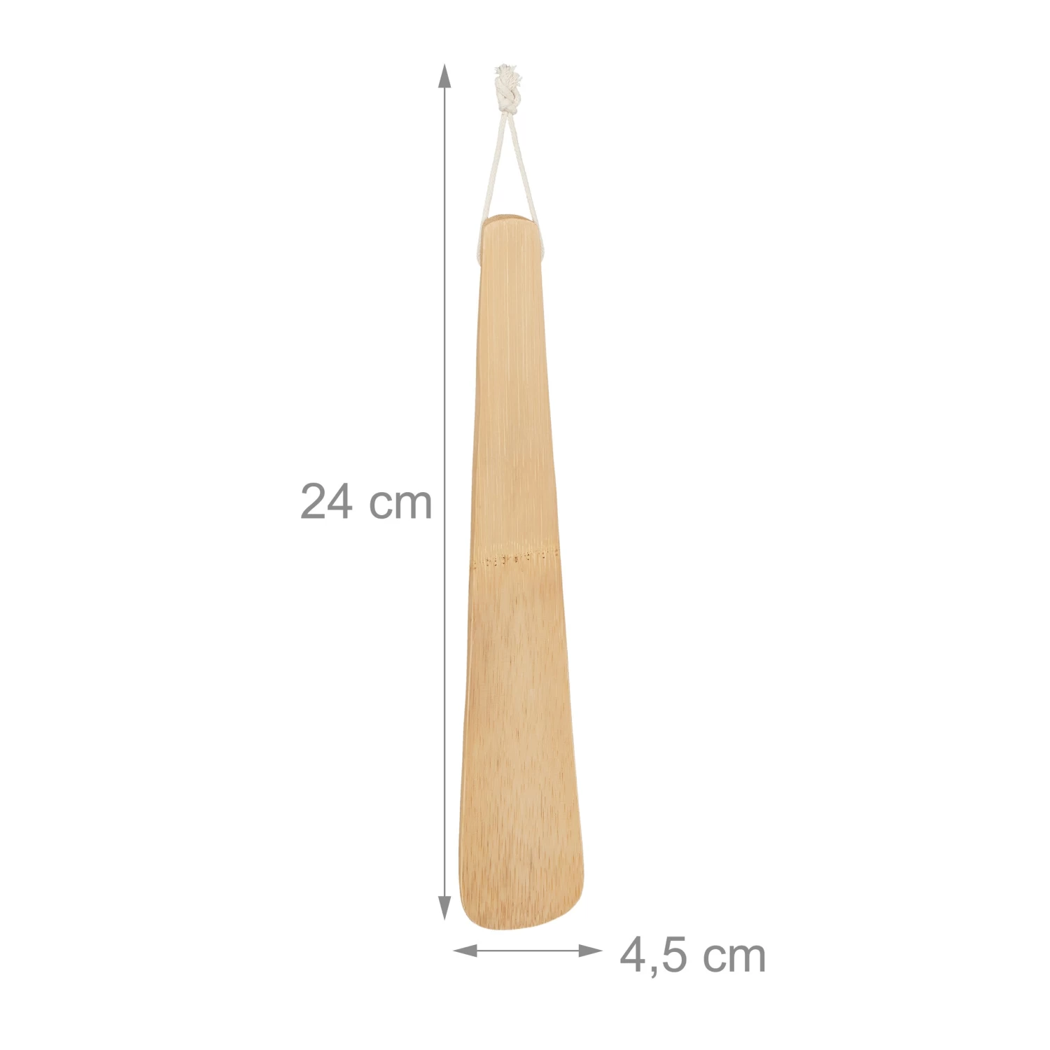 Mit der praktischen Schuhanziehhilfe ist das tägliche Schuhe anziehen besonders komfortabel. Nutzen Sie den Bambus Schuhanzieher bequem und gelenkschonend im Sitzen oder im Stehen. Durch die handliche Größe ist der Shoe Spoon sowohl für Erwachsene und Senioren geeignet, als auch für Kinder, die Schuhe anziehen lernen. Hängen Sie den Schuhanzieher mit dem Aufhängeband einfach griffbereit an Ihre Garderobe. Aber auch auf Reisen ist der kurze Schuhlöffel nützlich, da er in jeden Reisekoffer passt.