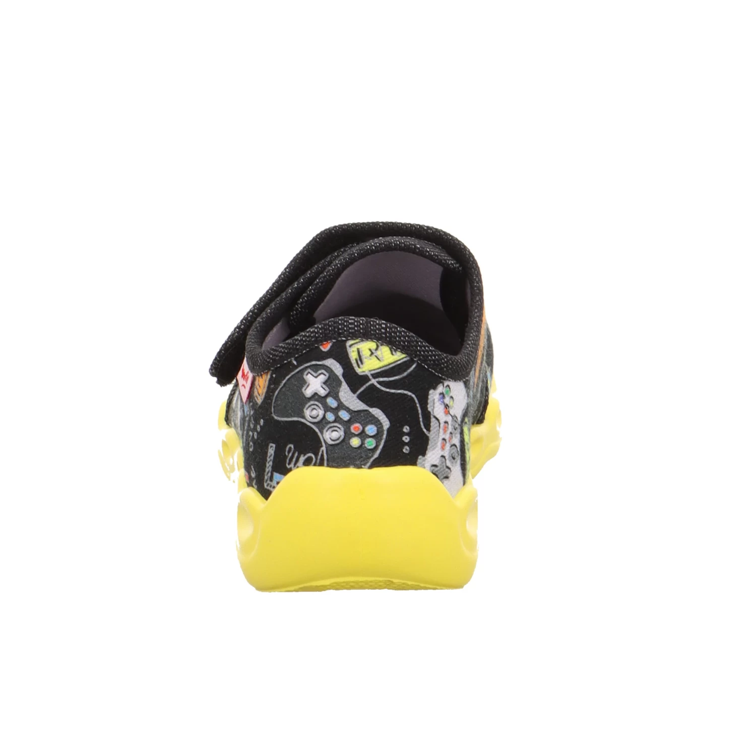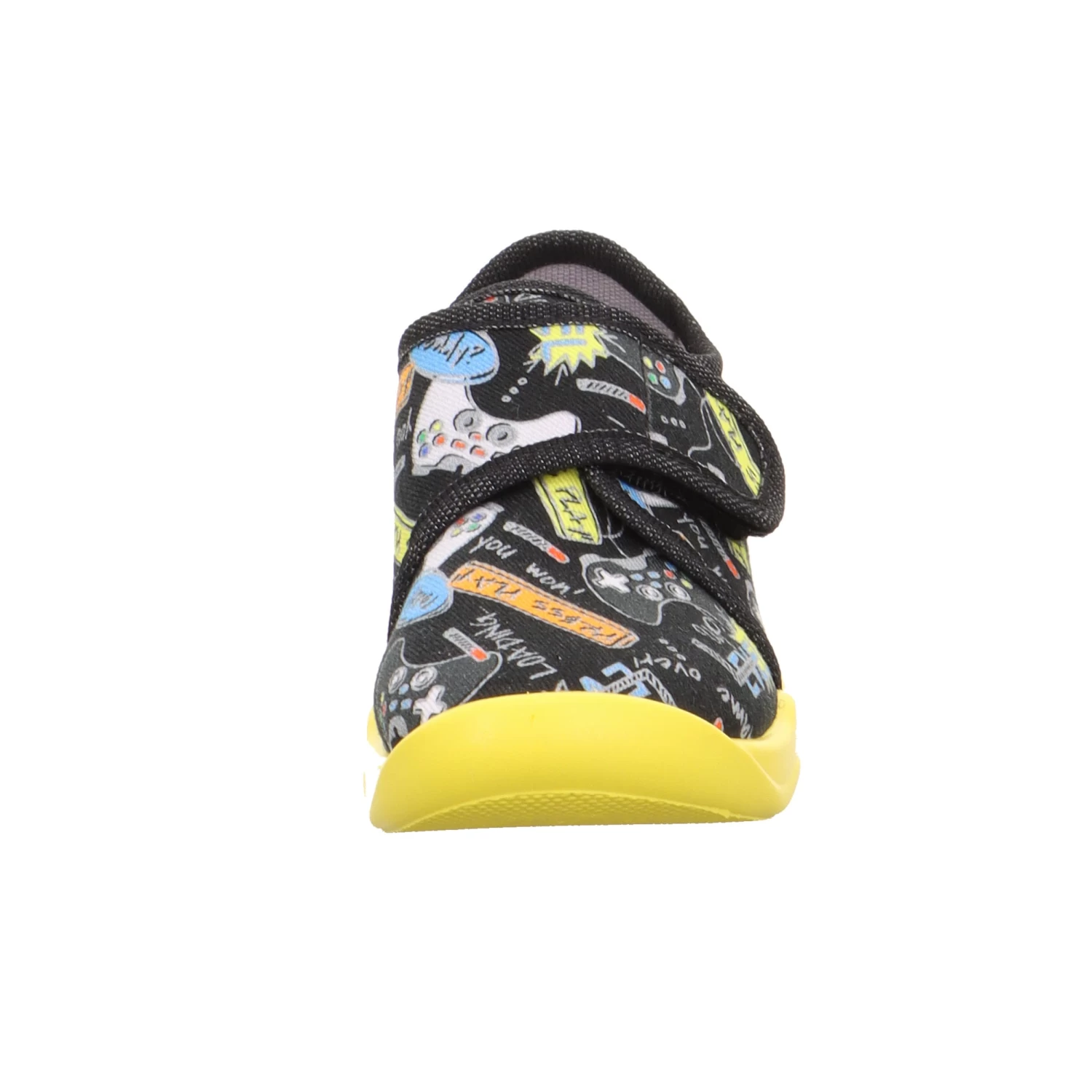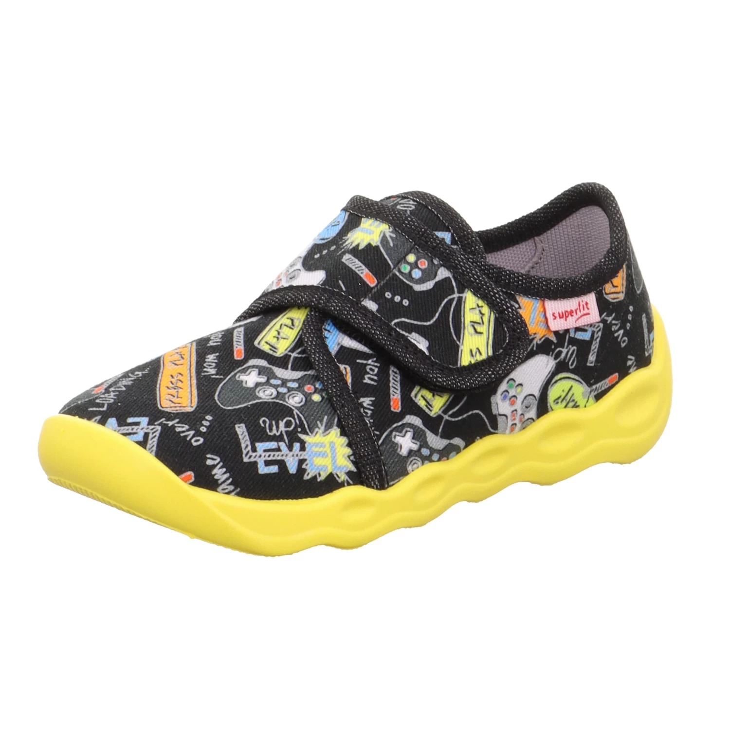 Der Hausschuh BUBBLE überzeugt kleine Gaming Fans spielend. Der superfit Halbschuh ist mit einem Comic Print und Spielekonsolen in fröhlichen Farben sowie einem Futter und Einfassband in kräftigem Ton versehen. Mithilfe des Klettverschlusses lässt sich der superfit Halbschuh weit öffnen, was den Einstieg super schnell und bequem macht. Der superfit Hausschuh BUBBLE wird in WMS-Weite gefertigt.
