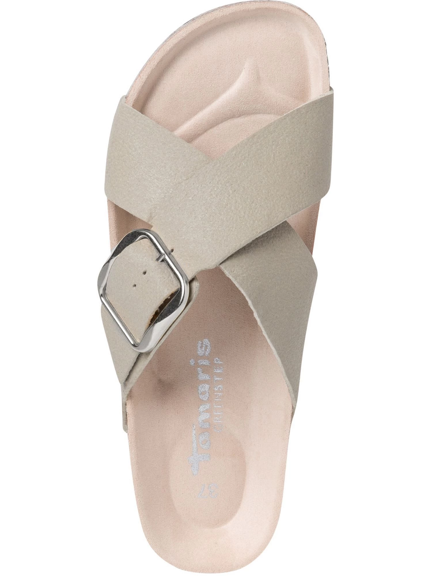 Die limitierte Tamaris GREENSTEP Pantoletten-Kollektion vereint innovative Nachhaltigkeits-Features mit modischem Anspruch und einem luftige-leichten Tragegefühl. Der nachhaltige Fashion-Allrounder ist exklusiv in unserem Onlineshop erhältlich. Im Herstellungsprozess verzichten wir bewusst auf tierische Materialien und fokussieren uns auf natürliche Bestandteile. Der Schuh ist als 100% vegan zertifiziert. Das Obermaterial der Pantolette wird mit der nachhaltigen Technologie HyphaLite™ auf Basis von Pilzen hergestellt. Bei der Laufsohle setzen wir mit der Algentechnologie BLOOM™ anteilig auf Biomasse. Futter und Decksohle mit anteiliger Verwendung von recyceltem Polyester. Produziert in Portugal.