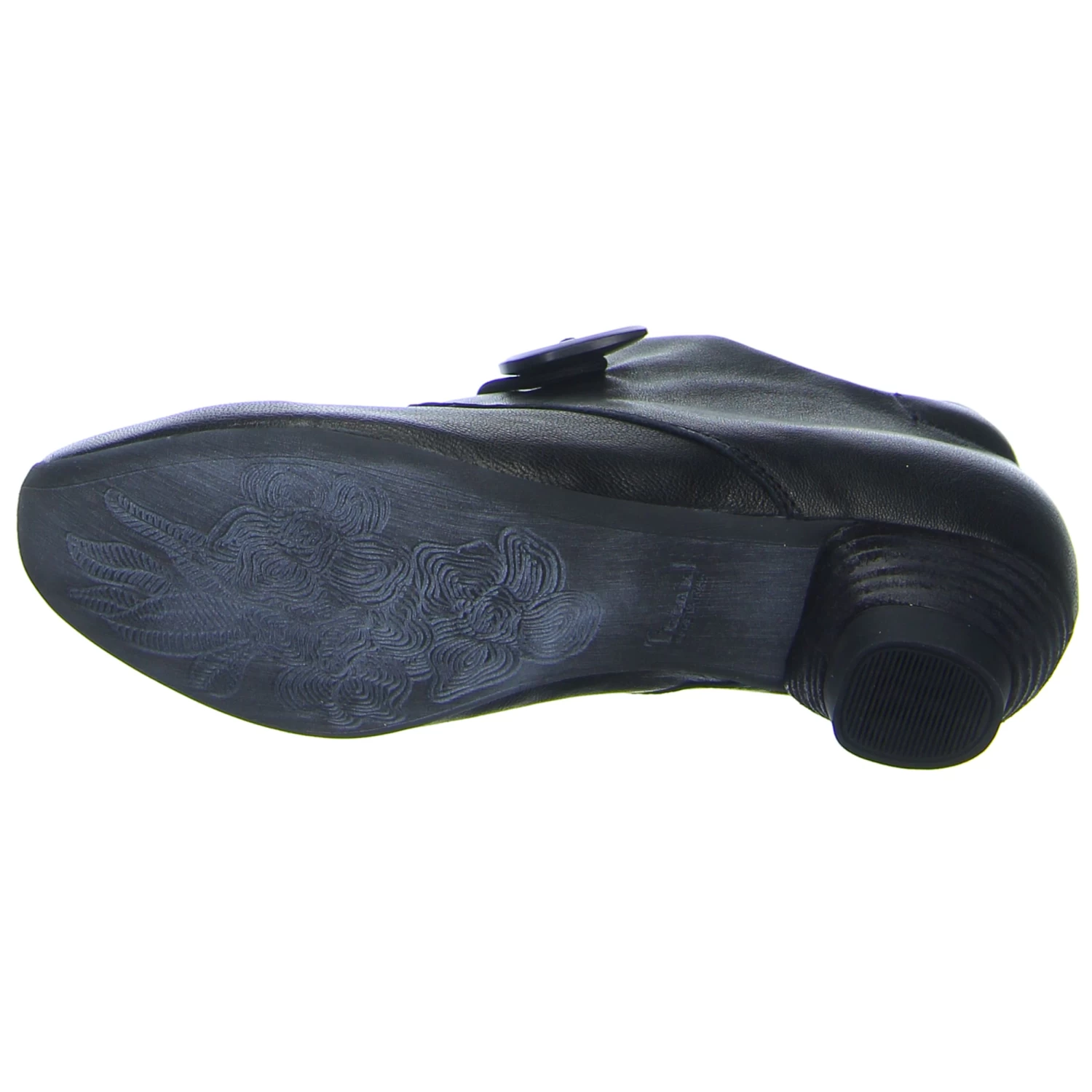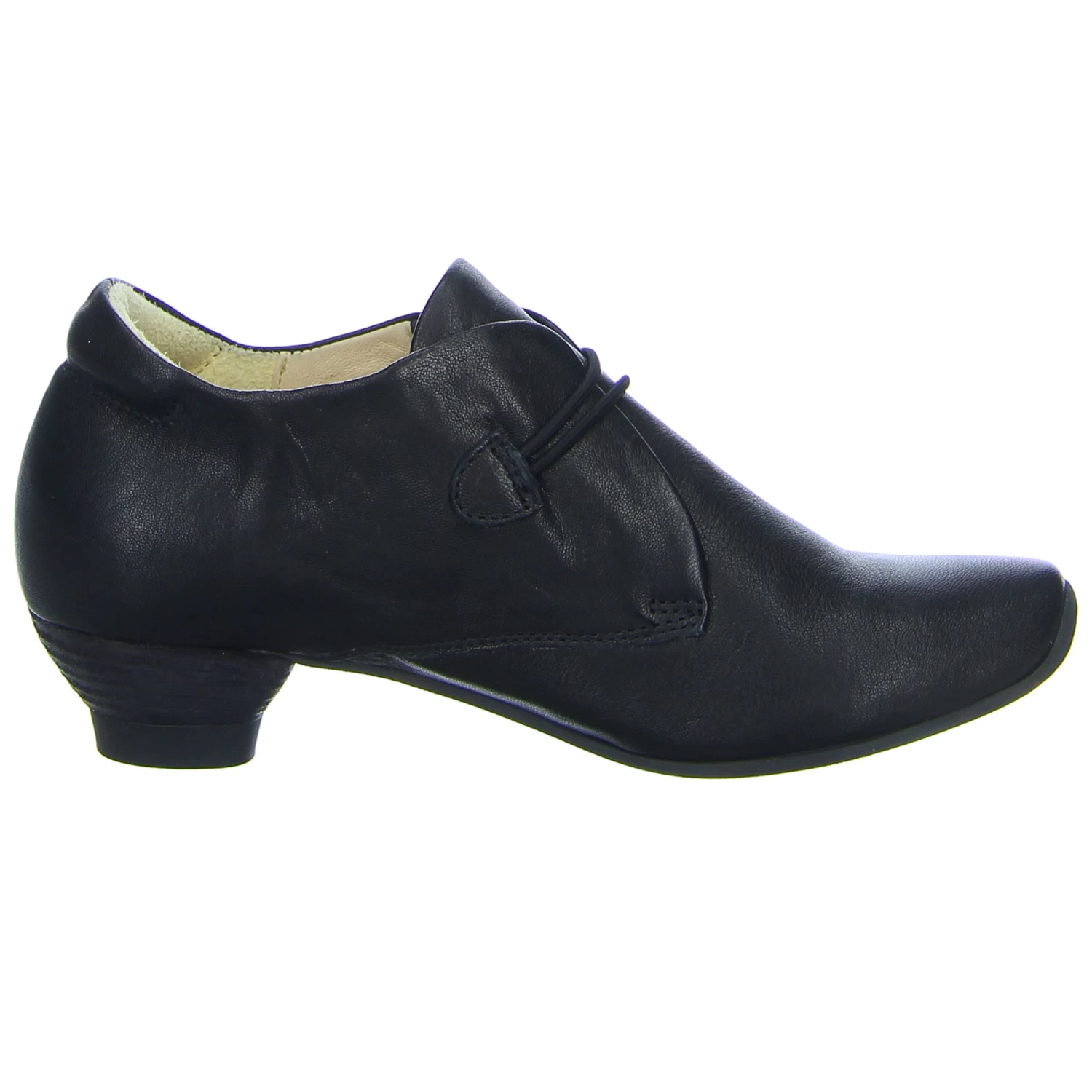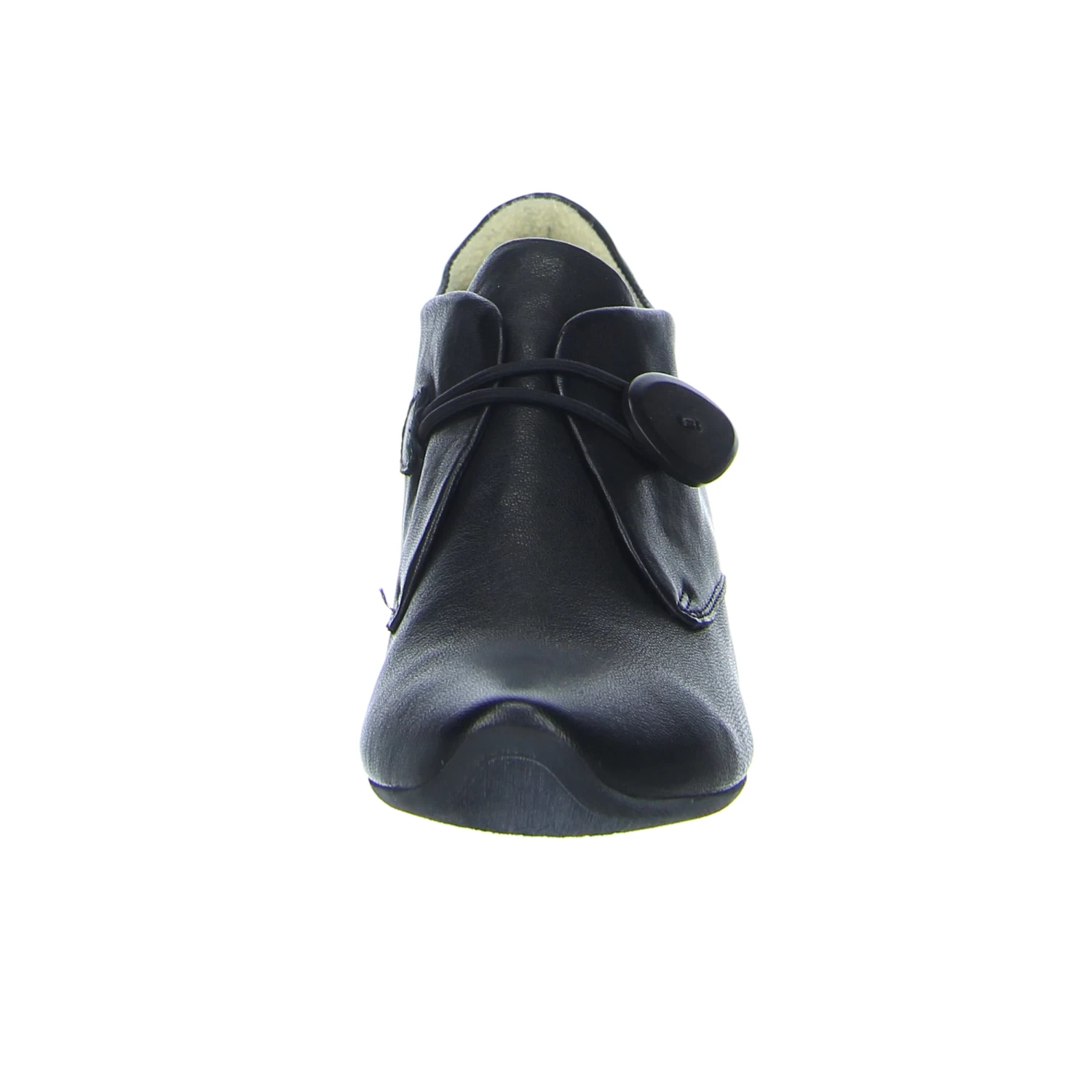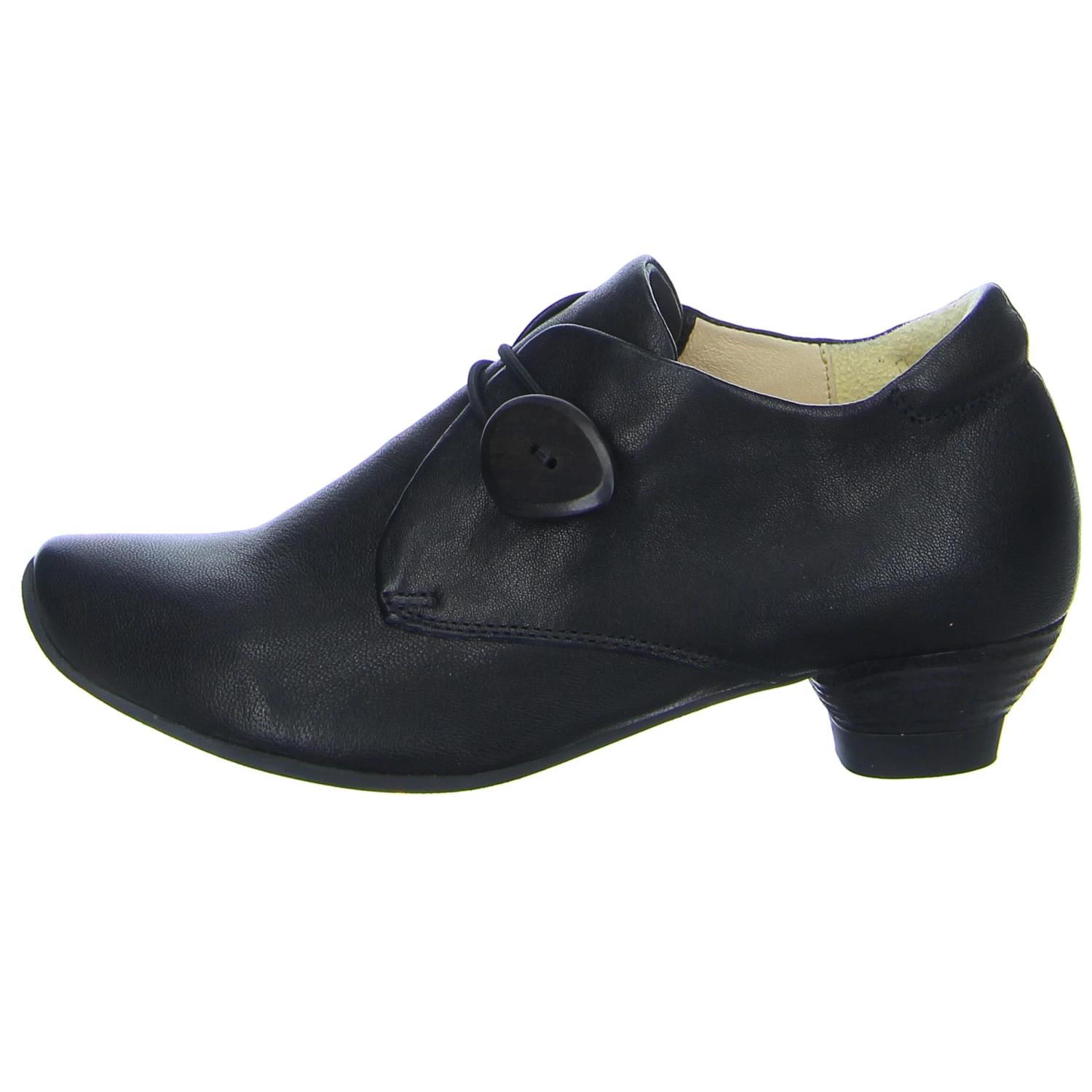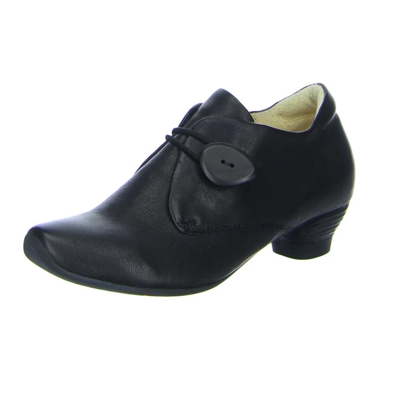 Die etwas anderen Pumps AIDA fallen durch ihren seitlichen Knopf aus echtem Holz und den asymmetrischen, hochgebogenen Spitzen ins Auge. Anatomisch geformt, unterstützt der Think! Halbschuh die natürliche Gehbewegung. Die Spitze bietet durch ihre einzigartige Form aber auch genug Platz für die Zehen. Daher sind AIDA für beinahe jeden Fußtyp geeignet. Mit wunderbar weichem, chromfei gegerbtem Leder und Futterleder gefertigt, schmiegt sich der Schuh fein an den Fuß. Ganz einfach zum Reinschlüpfen ist der AIDA der perfekte, feine Begleiter. Die Sohle ist aus TPU (Thermoplastisches Polyurethan) und unterstützt den Fuß bei jedem Schritt. Das Fußbett passt sich der Fußform optimal an und dämpft den Auftritt. Dadurch werden die Gelenke und Bänder geschont.